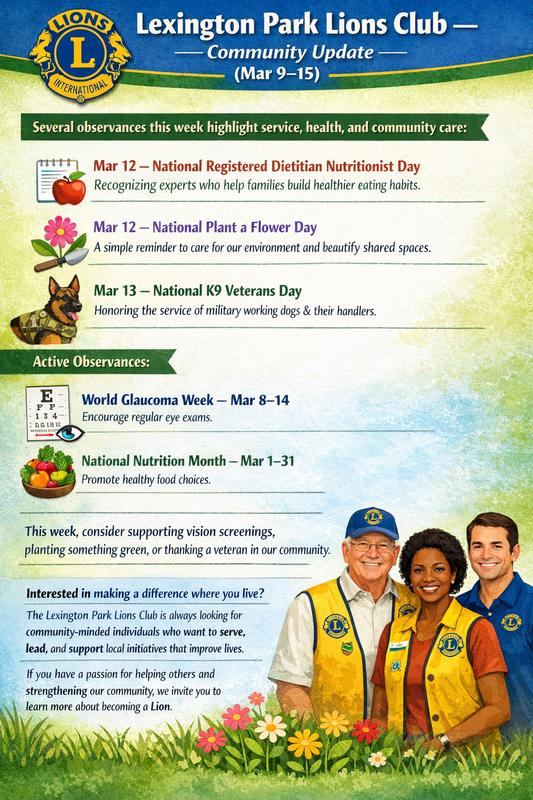 #ServeWithLions #VisionHealth #NutritionMonth #K9Veterans #CommunityService #PlantSomething #LexingtonParkLions |