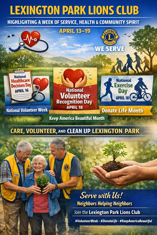 Here in Lexington Park, these observances are more than dates on a calendar - they are opportunities. Whether it’s thanking a volunteer, supporting a caregiver, making healthier lifestyle choices, or lending a hand to keep our community clean, each small action contributes to a stronger, more connected community. The Lexington Park Lions Club remains committed to these values through ongoing service projects and outreach efforts.